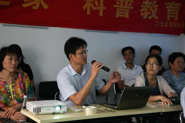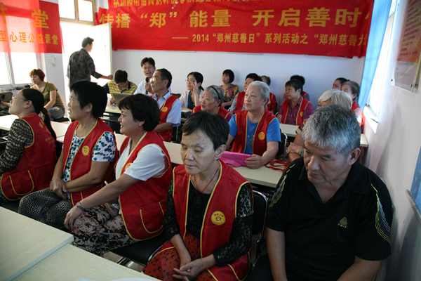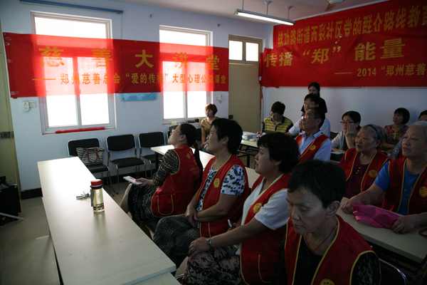 9月4日下午,鄭州慈善總會聯合鄭州未來心理工作室慈善志愿者工作站在西彩社區開展以“家庭親子互動”為主題的公益講座。西彩社區多位居民參與此次活動。 講座上,未來心理工作室王衛學老師首先與大家進行了良好的互動。隨后,王老師就“家庭親子互動”這一主題進行了深入的講解。大家都得說:原來我在教育孩子過程中這些方法都是錯誤的啊,以后要改改,真是受益匪淺啊。