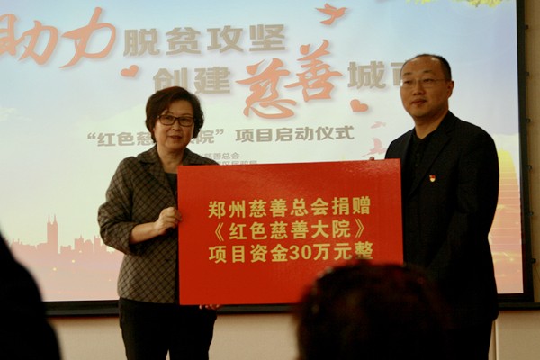 2019年10月17日下午,由鄭州慈善總會、管城回族區慈善總會、航海東路街道辦事處、鄭州市馨家苑社區服務中心在管城區區級服務中心共同舉辦“鄭州慈善‘紅色慈善大院’公益項目啟動儀式”。鄭州慈善總會會長姚待獻、管城回族區區委常委、區委辦主任劉守斌等領導出席活動。鄭州慈善總會投入30萬元善款打造的我市首家“慈善社區”已經初見成效。